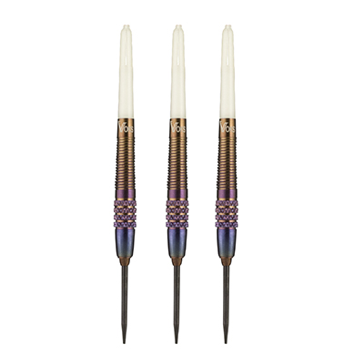 The Voks Fulcrum Bruiser Color Flow Darts combine eye-catching rainbow-style color flow with smart performance. Featuring Voks’ Fulcrum points, a front knurl and rear spiral grip, and easy conversion to spring-loaded or 2BA soft tip, each unique set of three delivers versatile play and standout style.
